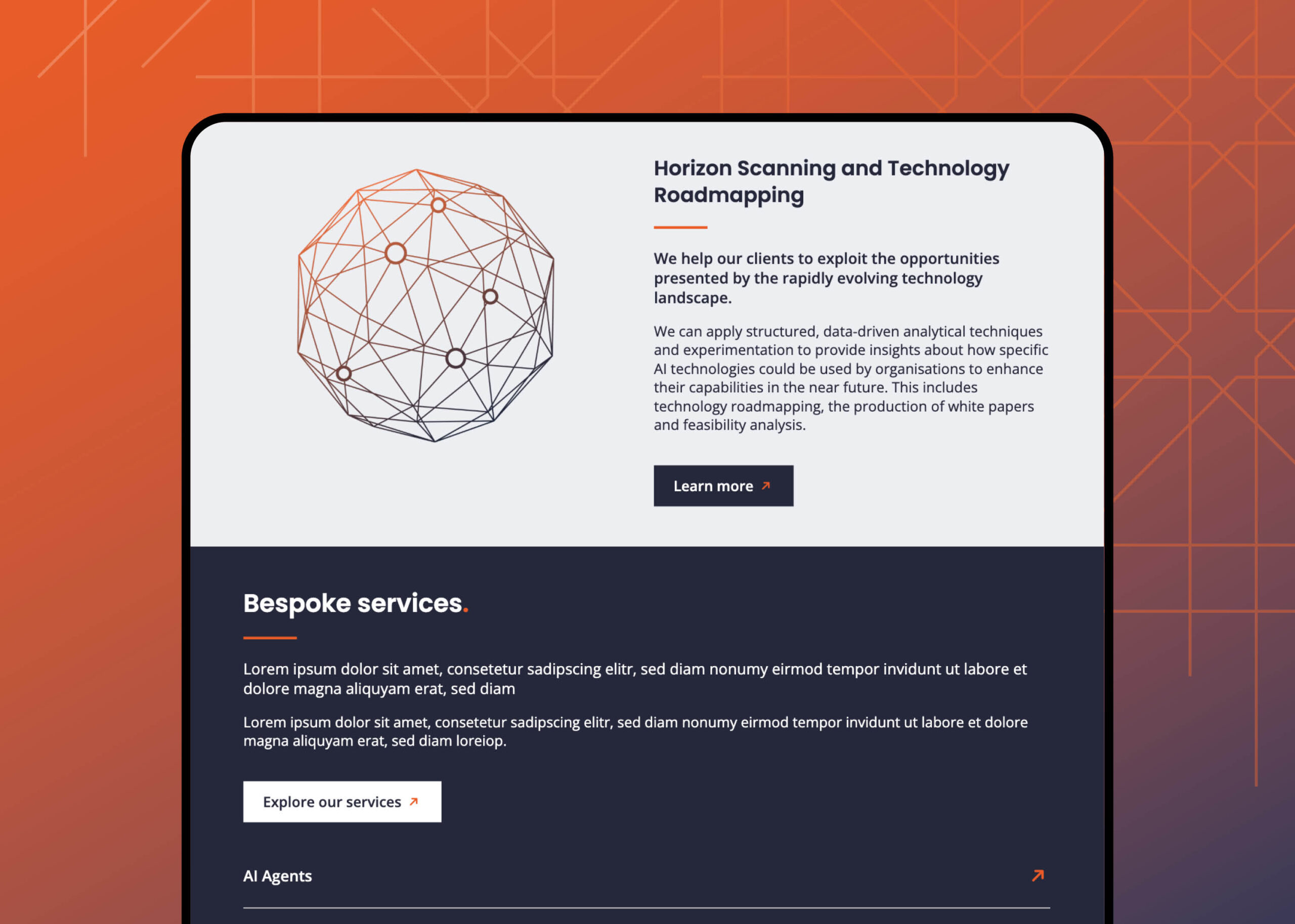 The website design process began with a thorough analysis and restructuring of the sitemap to inform an optimised navigation. Key page templates were identified, and wireframes were produced to test and refine the site’s user experience (UX). Intricate graphic devices were created to visually represent Aleph’s data and tech-driven services. The website was designed to highlight Aleph’s expertise in data science and AI solutions, maintaining a clean, contemporary interface that enhances the UX. Built on a WordPress CMS, the website leverages the platform’s flexibility to create a user-friendly site that reflects the company’s professionalism. The CMS enables Aleph to easily update content and add new pages as required, ensuring the site remains current and adaptable. With intuitive navigation, clear calls to action, and a responsive layout, the site provides a seamless experience while enhancing Aleph’s digital presence. This cohesive approach reinforces their reputation as an innovative consultancy and positions them as a leader in their field.