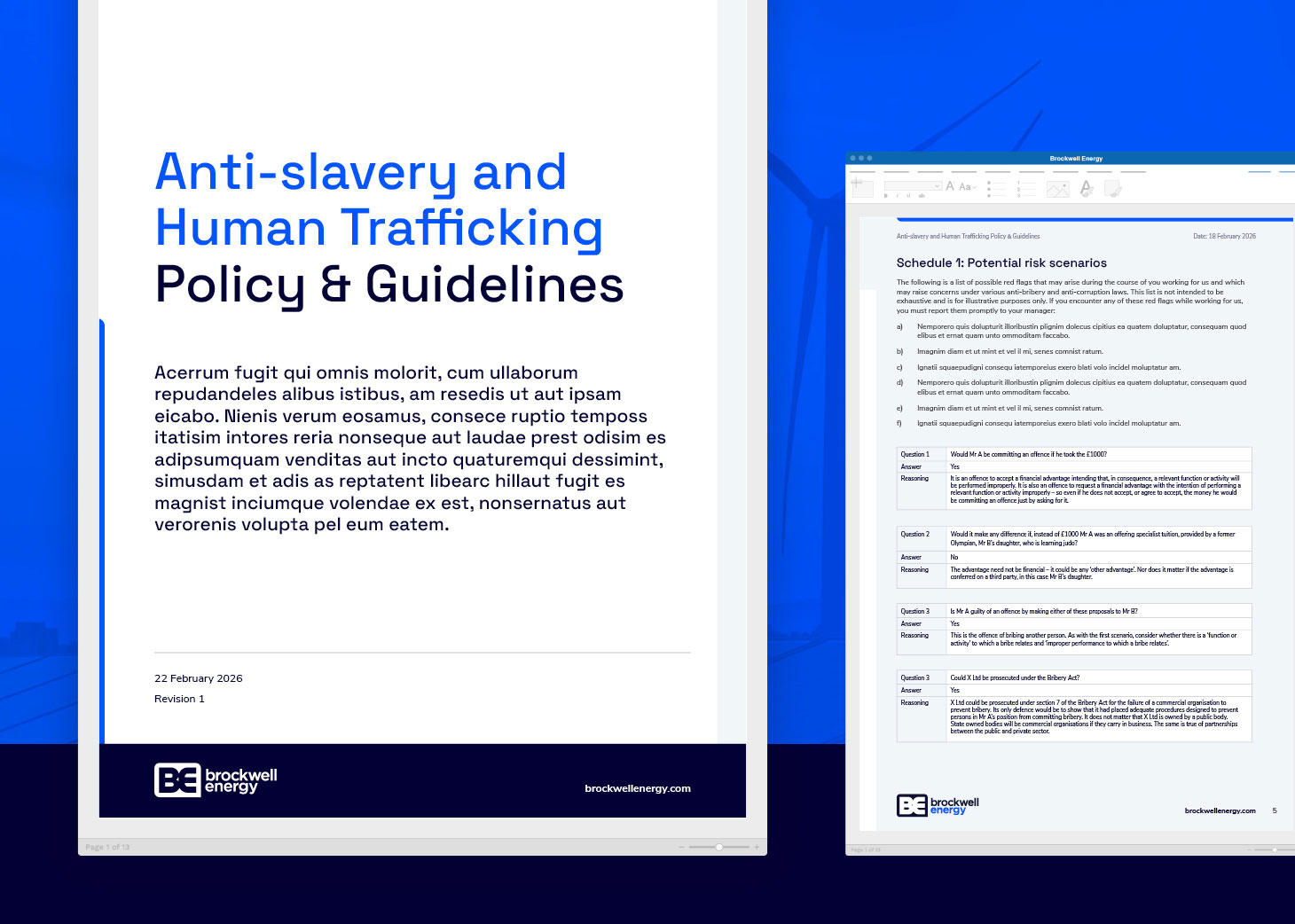 Brockwell Energy approached Firefly to develop a suite of Microsoft Word templates. This included a Word report template, letterhead with continuation paper and memo as well as a bespoke template for their various policy and procedure documents. Each of these were to be designed in line with their existing branding and follow a consistent look and feel.